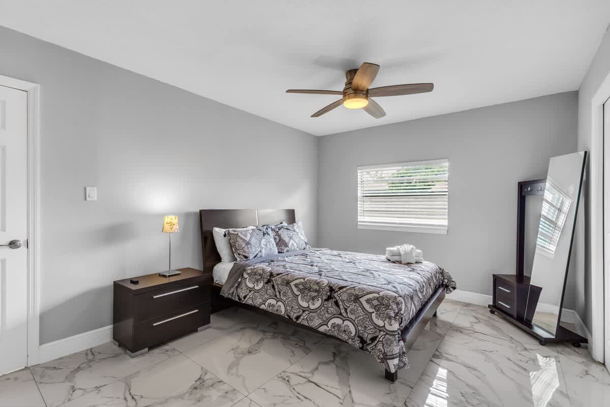 ☞ 3 Bedrooms | Fresh linens ☞ 2 Bathrooms | Fresh Towels ☞ Modern kitchen w/ new appliances ☞ Large living area w/ Smart TV ☞ Outdoor sitting under Tiki Hut W/ BBQ ☞ Central location between Miami and West Palm Beach ☞ High Speed Wifi (Free) ☞ Free parking Some Reviews from our past guests :) "Great stay and location. Clean with everything needed. Very responsive host." - Jozy ★★★★★ "Cozy and relaxing place Would definitely book with them again." - Arthur ★★★★★ "Beautiful, clean, well stocked. Extremely accommodating." - Mirelle ★★★★★ I want you! Tell me what I can do to be your host. Click the ❤ in the upper-right corner to save this listing! Other amenities: - Recently remodeled - Onsite washer + dryer - Fully fenced backyard