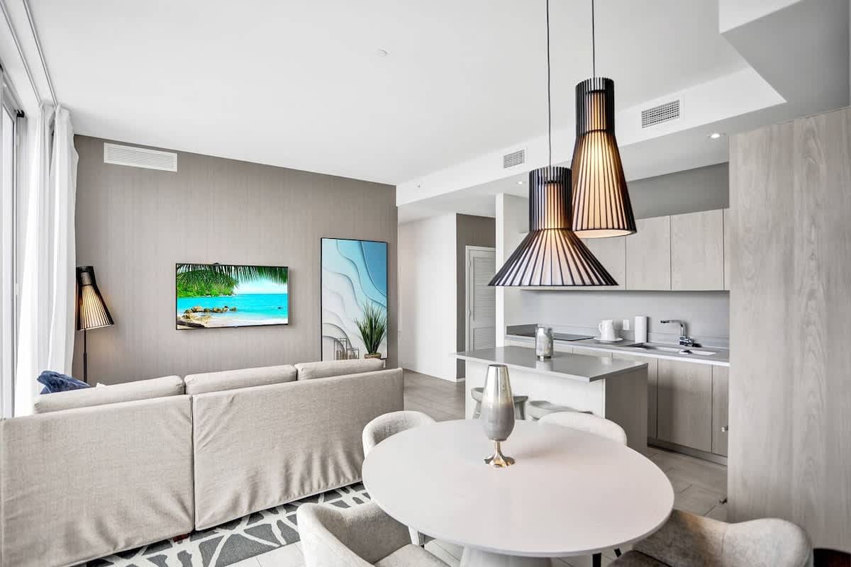 Welcome to your luxurious beach Penthouse retreat! This modern 3-bedroom apartment on the 43th floor offers an upscale stay with breathtaking ocean views. Beautifully decorated, the apartment ensures a premium experience. Located right on the beach and close to nightlife, VENTUR is the perfect place to stay!