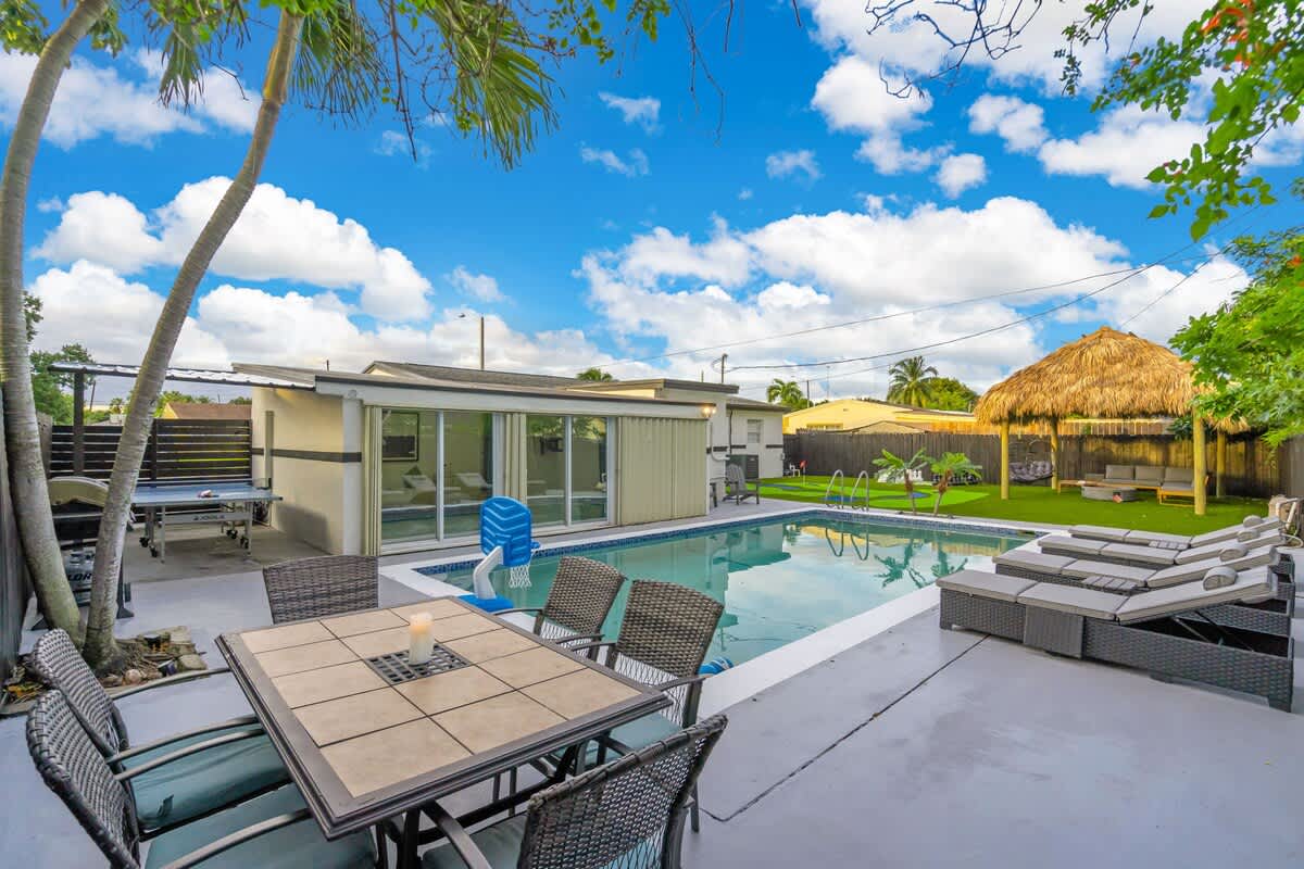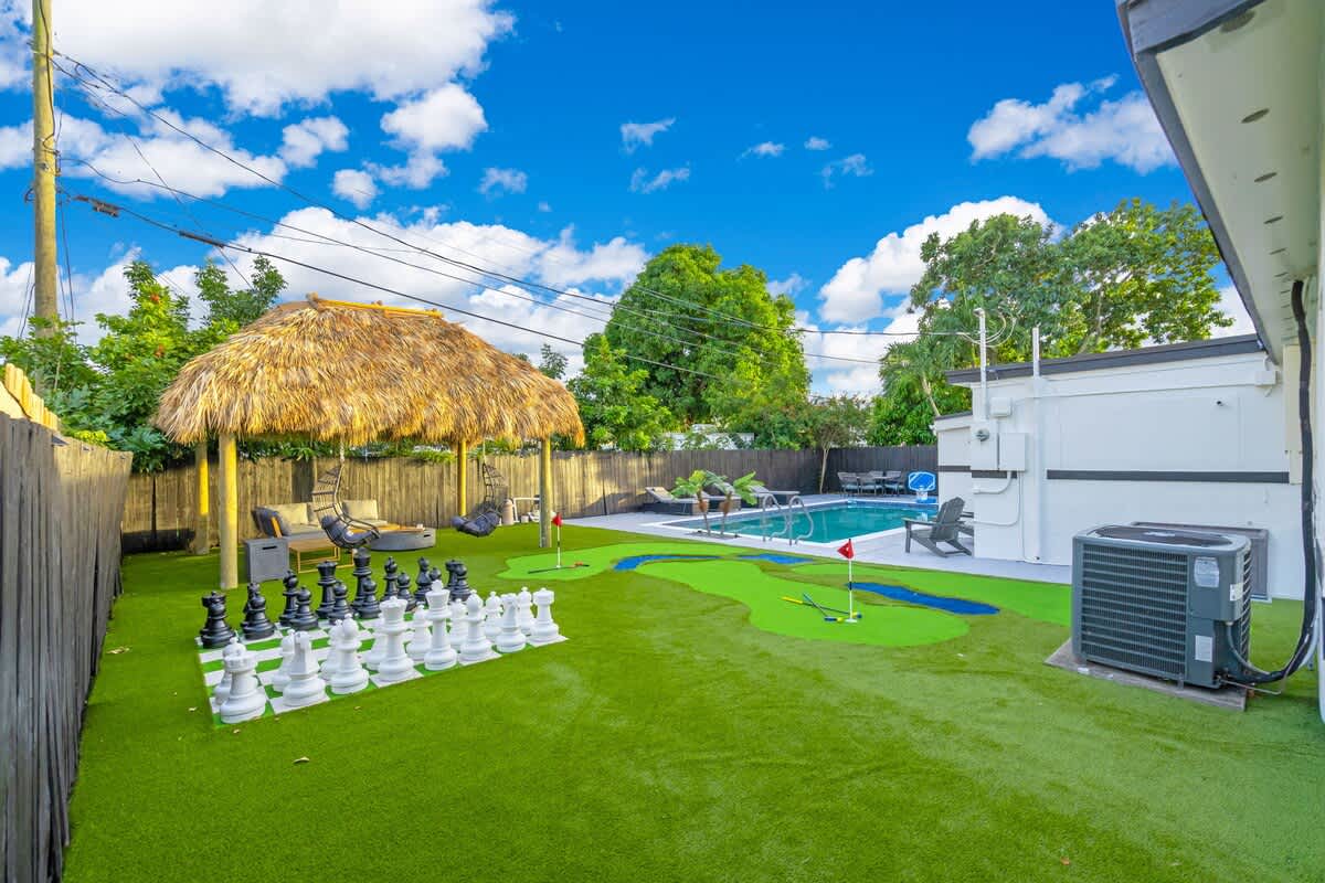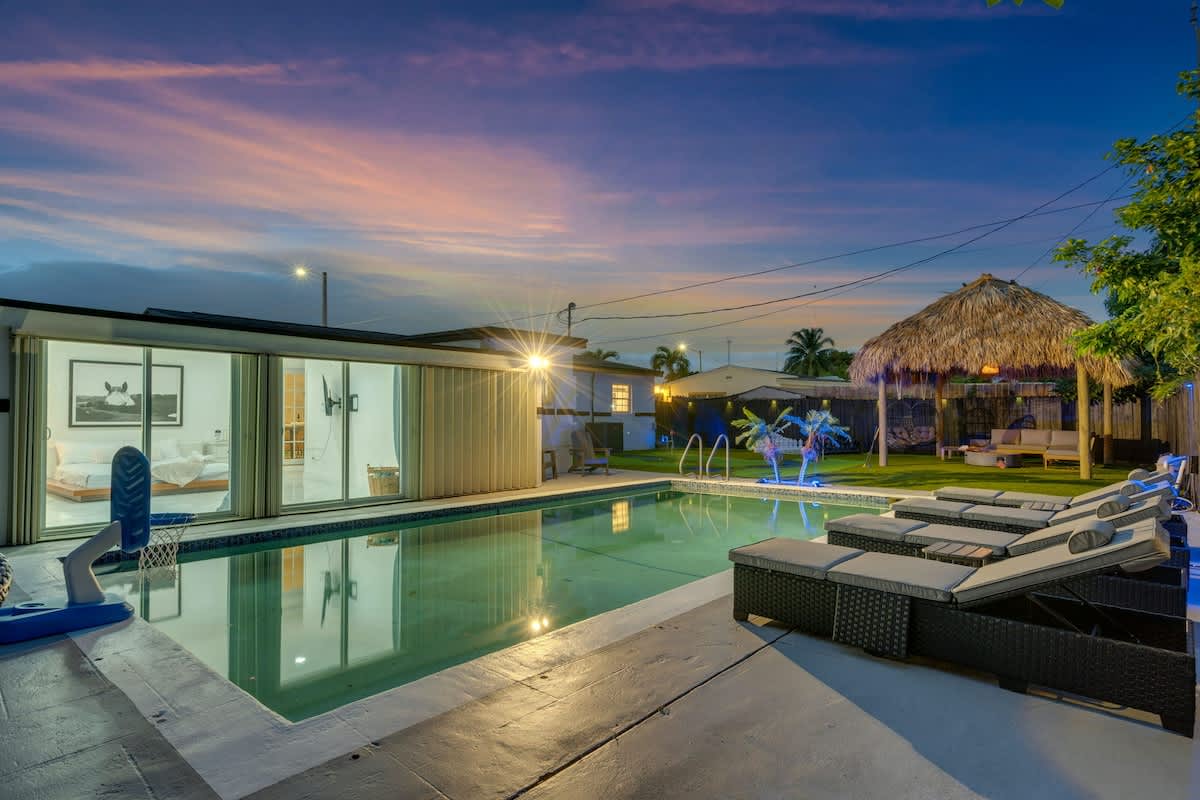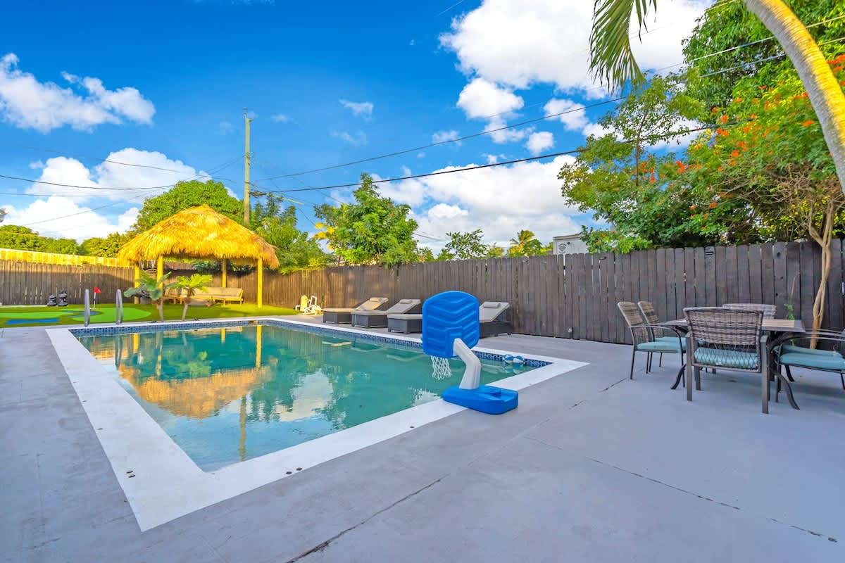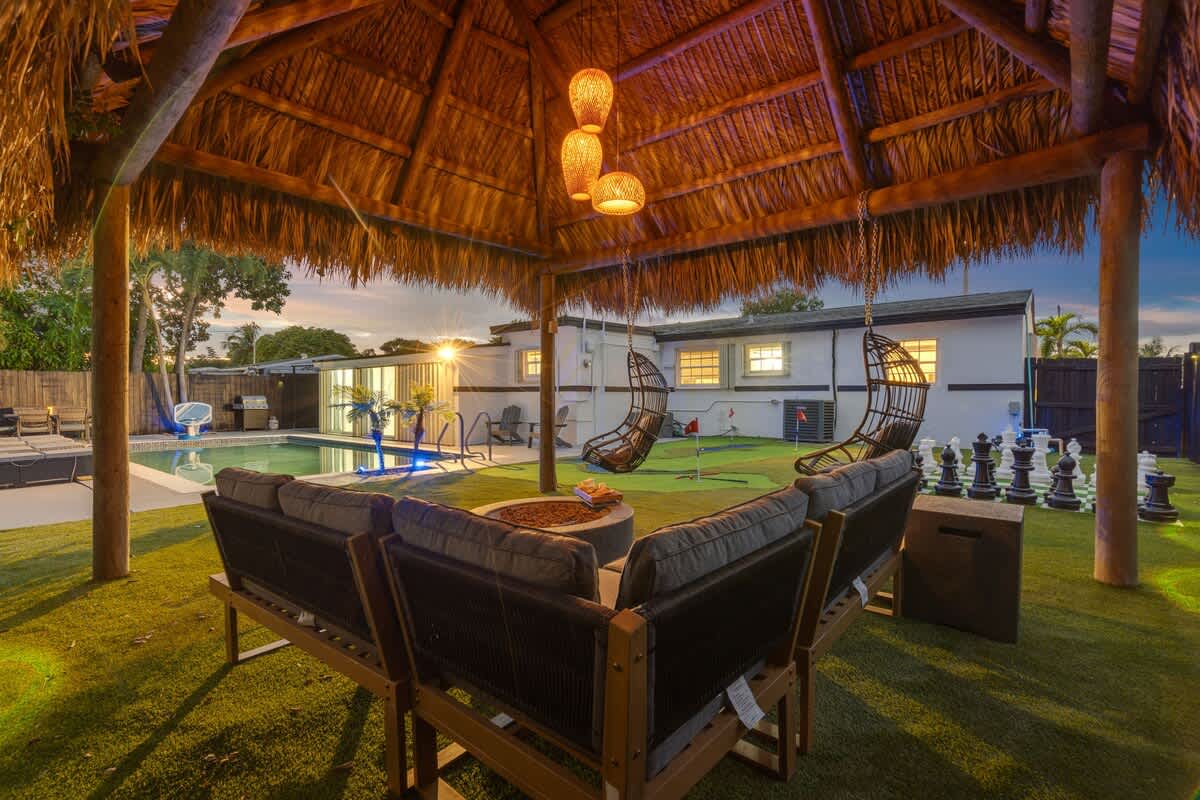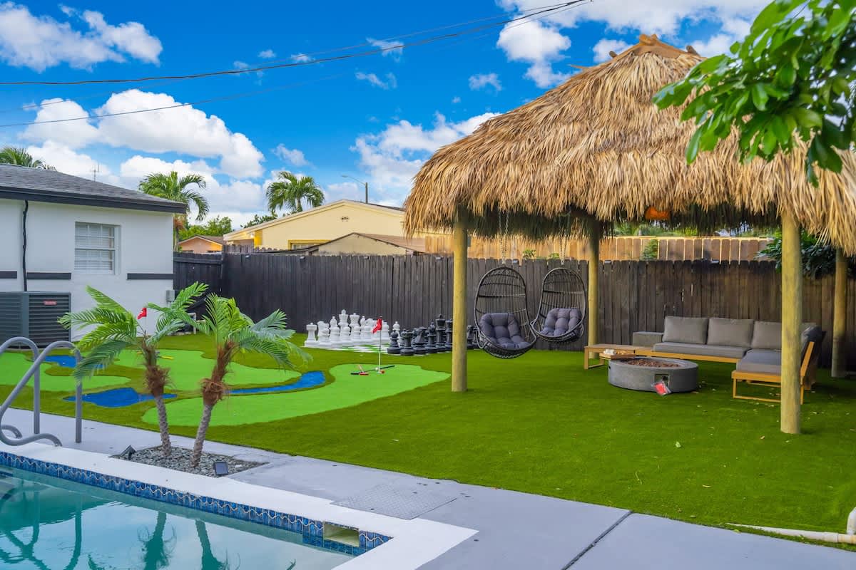 This 4-bedroom house located in the center of Miami offers an unforgettable experience, close to the beach and local restaurants. This getaway has everything for a perfect Florida experience—enjoy the arcade games, relax by the pool, play golf enjoy the firepit & giant chess games and dine by the sunset. Discover nearby attractions, and experience the difference.