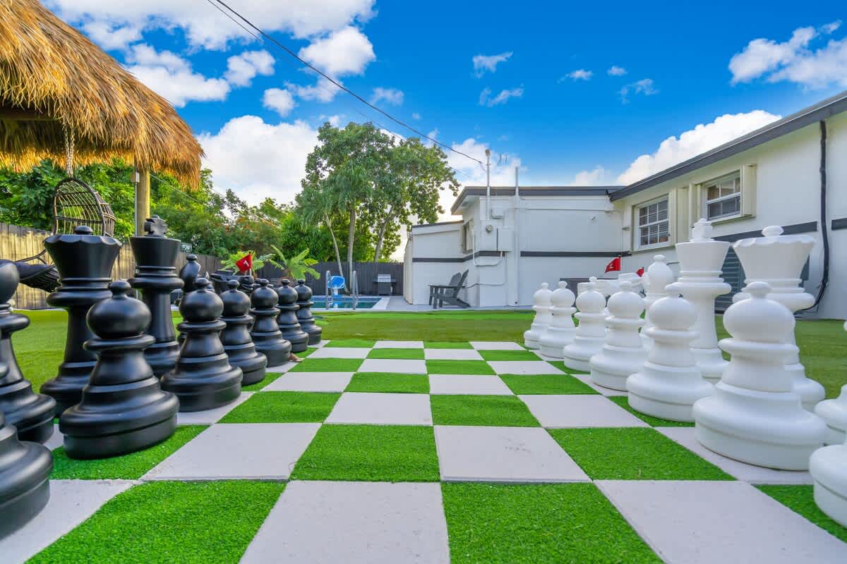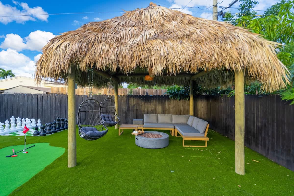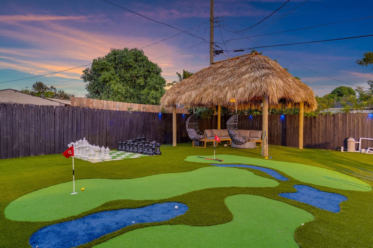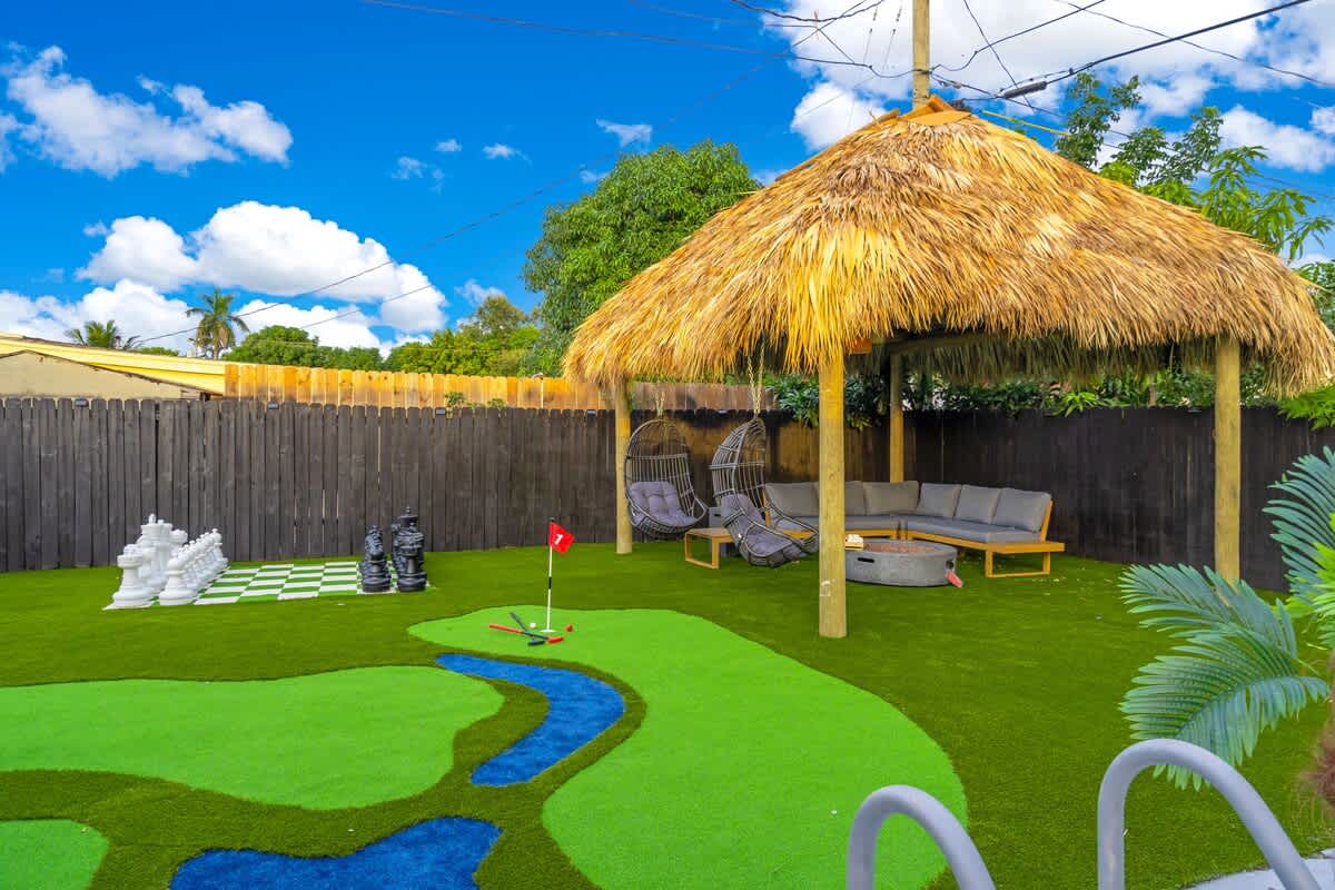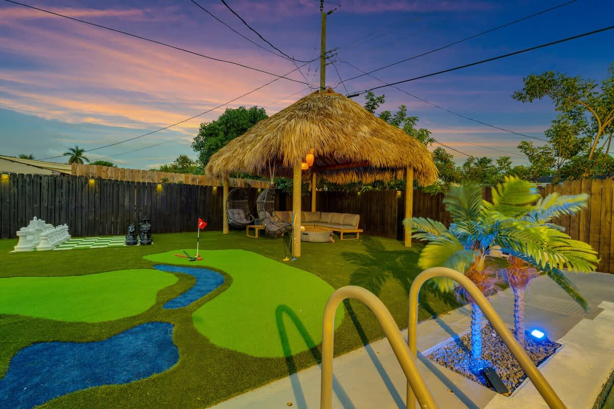 This 4-bedroom house located in the center of Miami offers an unforgettable experience, close to the beach and local restaurants. This getaway has everything for a perfect Florida experience—enjoy the arcade games, relax by the pool, play golf enjoy the firepit & giant chess games and dine by the sunset. Discover nearby attractions, and experience the difference.