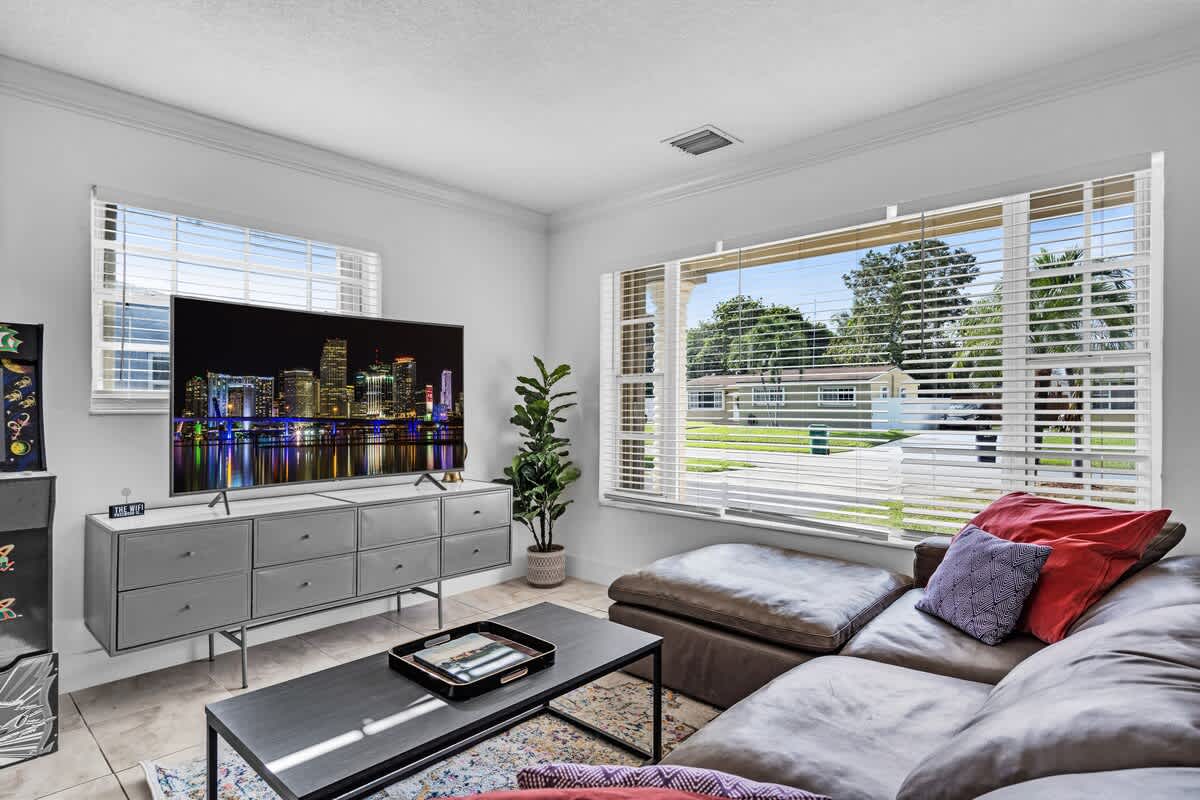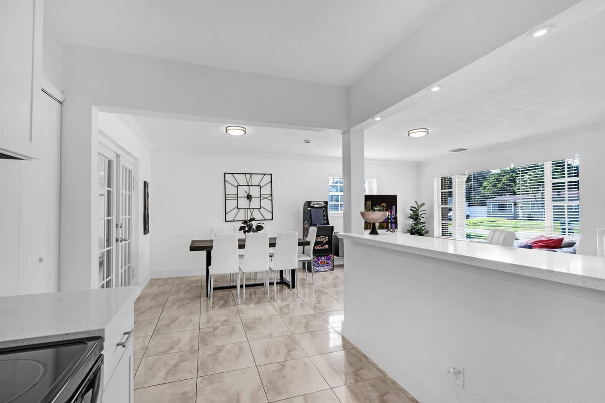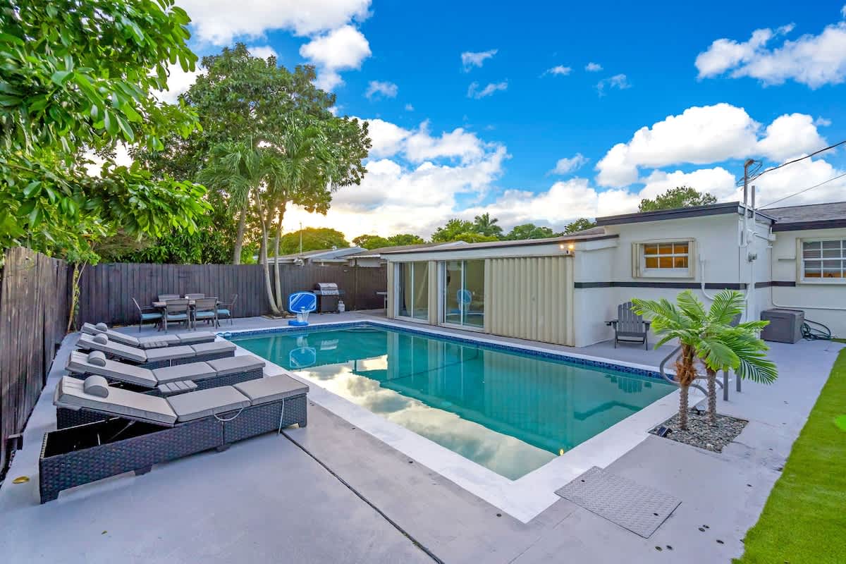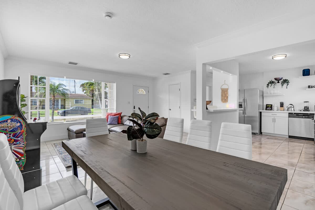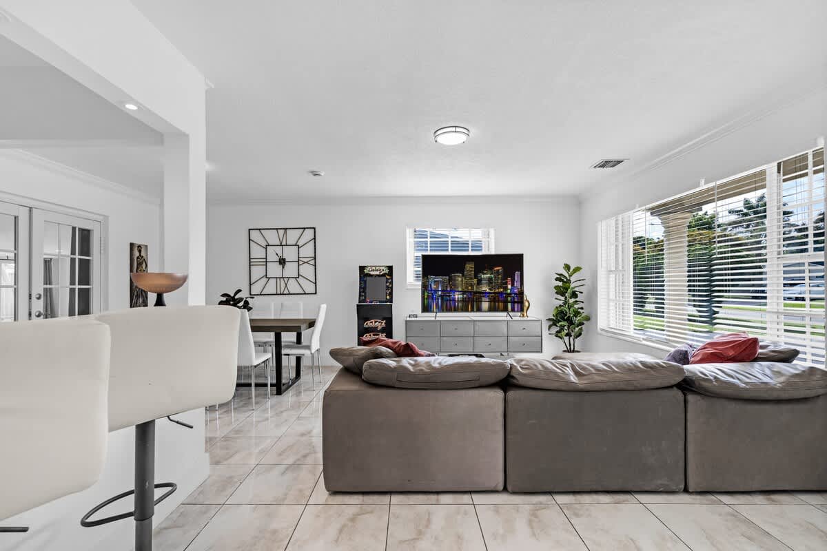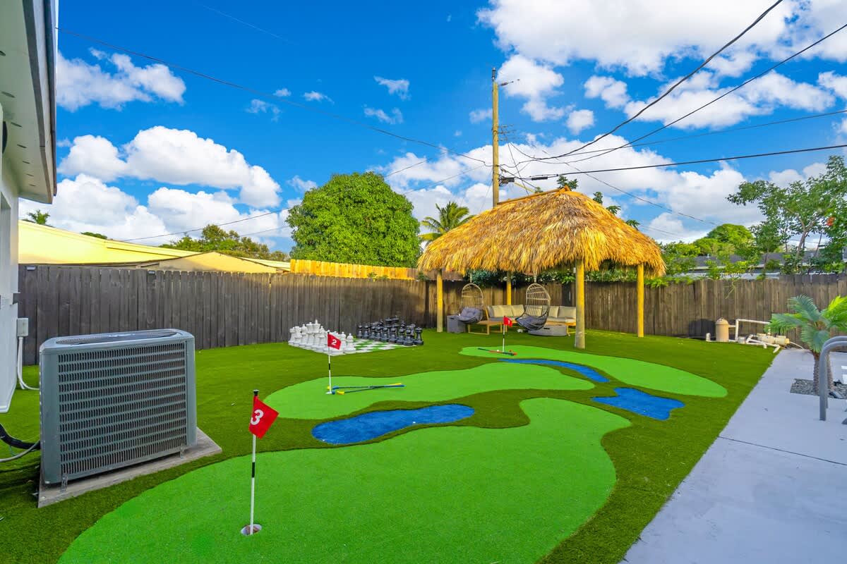 This 4-bedroom house located in the center of Miami offers an unforgettable experience, close to the beach and local restaurants. This getaway has everything for a perfect Florida experience—enjoy the arcade games, relax by the pool, play golf enjoy the firepit & giant chess games and dine by the sunset. Discover nearby attractions, and experience the difference.