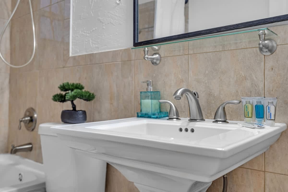 All bathrooms are fully stocked with essential toiletries, and fresh towels are provided to ensure a comfortable stay.